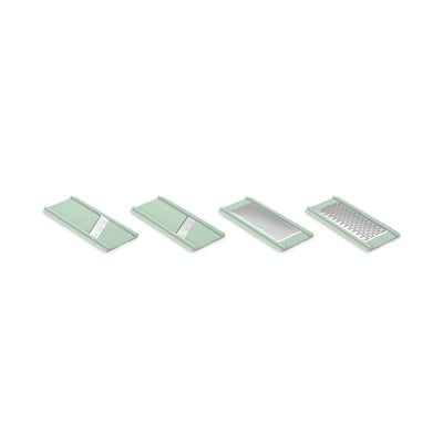 Višenamjenski rezač Brabantia Tasty+ odličan je dodatak svakoj kuhinji. Set uključuje prozirnu kutiju i četiri izmjenjiva ribeža i rezača: fini ribež, grubi ribež, tanki rezač i veliki rezač. Zahvaljujući pametnom držaču, sir ili povrće možete rezati do kraja bez rizika od ozljeda.