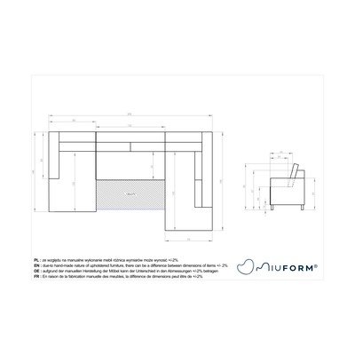 Baršunasti kauč na razvlačenje Miuform Stylish Stan dnevnom boravku dodaje dašak elegancije i glamur stila. Ova praktična i estetski zanimljiva sofa također pruža udoban prostor za spavanje za 2 osobe. Brend Miuform proizvodi praktične i dizajnerske sofe koje imaju za cilj zadovoljiti sve potrebe kupaca. Istovremeno, ovaj brend naglašava poštivanje okoliša. Već u fazi procesa projektiranja također uzimaju u obzir ekološku prihvatljivost transporta i skladištenja, optimizirajući tako, primjerice, dimenzije proizvoda. Mnogi elementi trosjeda izrađuju se i ručno kako bi se postigla zadovoljavajuća kvaliteta. Napomena: Sofa ima duži lijevi kut. gledano sprijeda Neka vas privuče ilustracija videa: