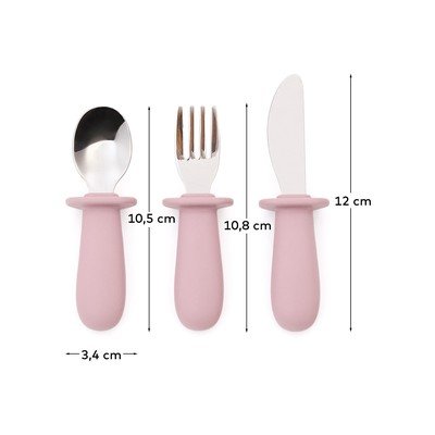 Dječji pribor za jelo Lili brenda Kave Home praktičan je set koji će mališanima olakšati objedovanje. Dizajniran je imajući na umu male goste i nije samo funkcionalan već i zabavan, što roditeljima olakšava hranjenje, a djeci jelo čini ugodnijim. Set uključuje žlicu, vilicu i nož. Sva tri dijela imaju čvrste, ergonomske silikonske drške idealne za male dječje ruke. Metalni funkcionalni dijelovi su izdržljivi, a oštrica noža je tupa i sigurna za djecu.