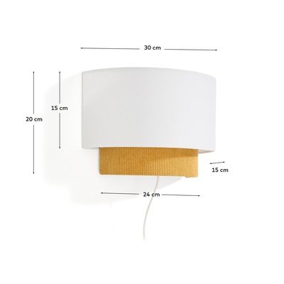 Zidna svjetiljka Bianella brenda Kave Home ističe se uravnoteženim i suvremenim dizajnom. Odlikuje se dvostrukim sjenilom izrađenim od finog samta i pamuka, koje omekšava svjetlost i pomaže u stvaranju ugodne atmosfere u svakom prostoru.