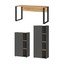 Dimenzije su mu 150 x 60 x 74 cm (širina x dubina x visina). Donji ormarić dimenzija 61 x 34 x 110 cm (širina x dubina x visina) nudi tri otvorena pretinca i jedan prostor za pohranu skriven iza vrata, iza kojih se nalaze dvije fiksne police. Viši ormarić dimenzija 61 x 34 x 145 cm (širina x dubina x visina) ima četiri otvorena pretinca. Iza vrata nalaze se četiri fiksne police, idealne za organiziranje dokumenata i uredskog materijala.