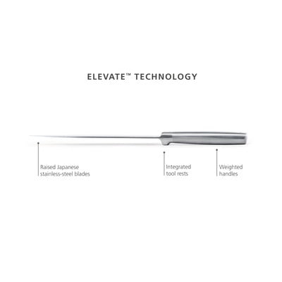 Set noževa Elevate Bamboo brenda Joseph izvrstan je dodatak svakoj kuhinji. Ovaj set uključuje pet noževa izrađenih od visokokvalitetnog japanskog nehrđajućeg čelika. Noževi imaju ergonomski oblikovane drške s Elevate naslonom koji osigurava udobnu i sigurnu upotrebu.
