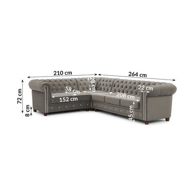BaršunastiSklopivaChesterfieldS lijevim kutom/u obliku slova LSivaVodootporna/otporna na mrljeS 4 mjestaŠirina 264 cm