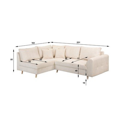 S lijevim kutom/u obliku slova L, siva, s 3 mjesta, širina 231 cm