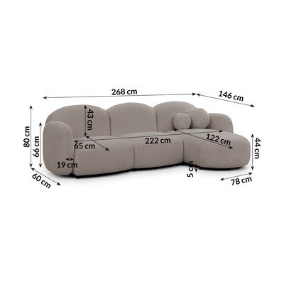 Svjetlo smeđa kutna garnitura od bouclé tkanine (s desnim kutom/s ležaljkom) Orbit – Ropez