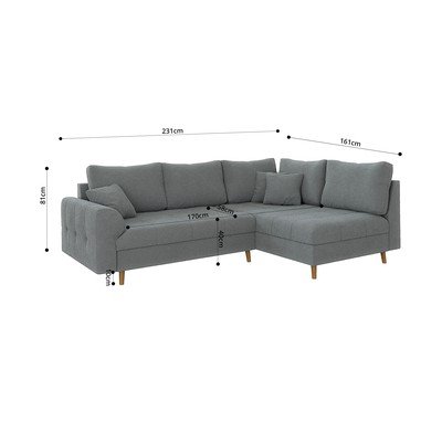 Od bouclé tkanine, s desnim kutom/u obliku slova L, siva, s 3 mjesta, širina 231 cm