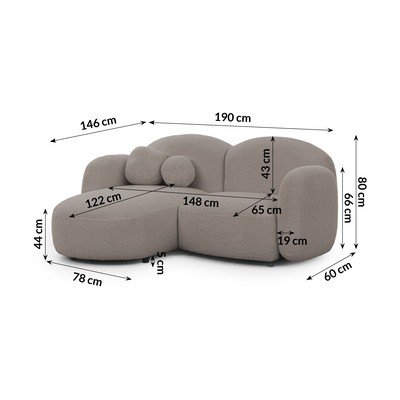 Svjetlo smeđa kutna garnitura od bouclé tkanine (s lijevim kutom/s ležaljkom) Orbit – Ropez