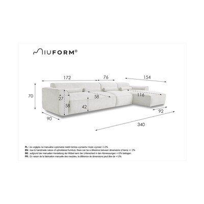 S desnim kutom/s ležaljkomTamno sivaOstaliŠirina 340 cmDubina 154 cmDubina sjedala 58 cm