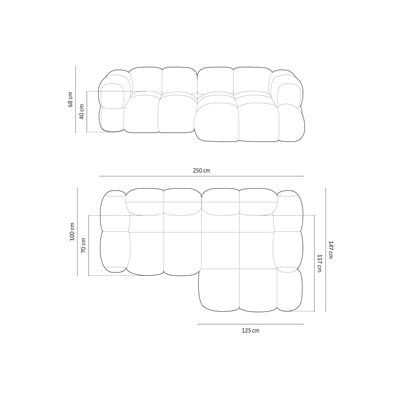 S desnim kutom/s ležaljkom, siva, s 3 mjesta, širina 250 cm