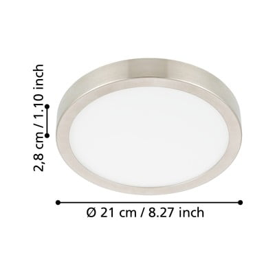 LED, s plastičnim sjenilom, metalna/plastična, siva, ø 21 cm, visina 3 cm