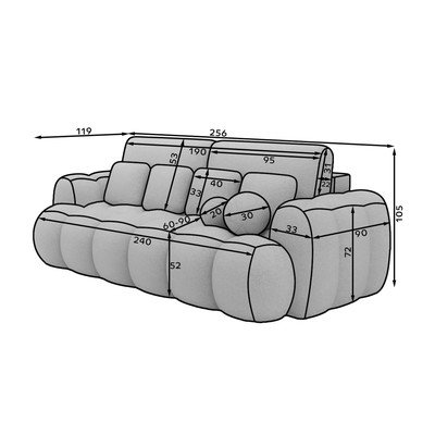 Od bouclé tkanine, sklopiva, siva, s 3 mjesta, širina 256 cm