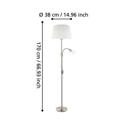 Prekrasna lampa za kut pored sofe. Navodi se da je abažur siv, ali je bijel.