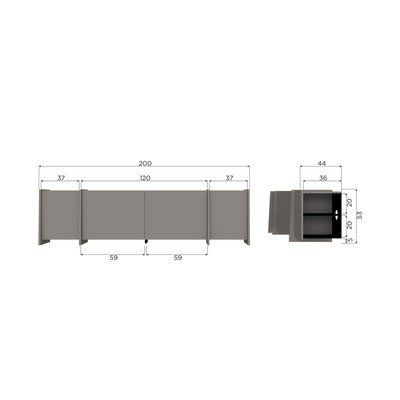U dekoru jasena, od šperploče, završna obrada: Furnir, siva, širina 200 cm, visina 53 cm, dubina 44 cm