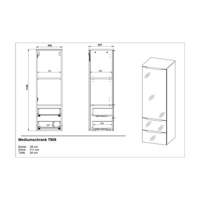 Kupaonski ormarić VasioVisok/zidni/uski, od iverice, završna obrada: Melamin/završna obrada: staklo, sa sjajem, sivi, širina 36 cm, visina 111 cm, dubina 34 cm