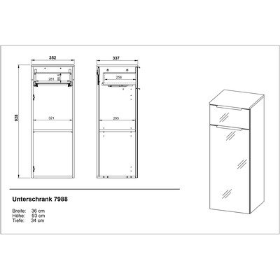 Kupaonski ormarić VasioVisok/zidni/uski, od iverice, završna obrada: Melamin/završna obrada: staklo, sa sjajem, sivi, širina 36 cm, visina 93 cm, dubina 34 cm