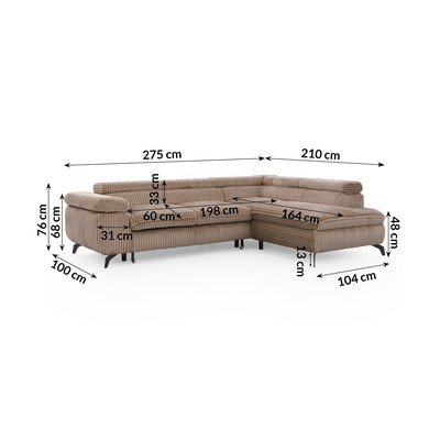 Od samtaPodesiva/sklopiva/s prostorom za odlaganjeS desnim kutom/u obliku slova LSmeđaPogodna za kućne ljubimce/otporna na mrljeS 4 mjestaŠirina 275 cm