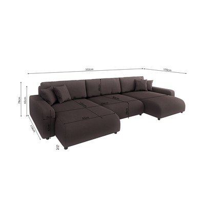 Od samta, sklopiva/s prostorom za odlaganje, u obliku slova "U", smeđa, ostali, širina 332 cm