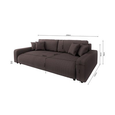 Od samta, sklopiva/s prostorom za odlaganje, smeđa, s 3 mjesta, širina 234 cm
