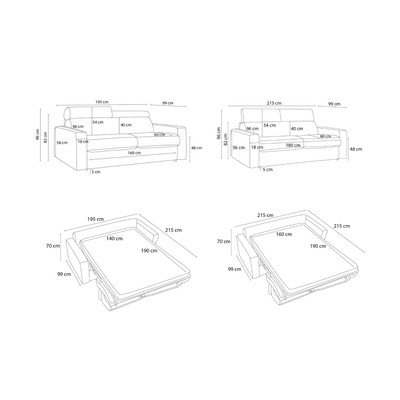 Tamno siva sklopiva sofa 195 cm Monaco – Bobochic Paris