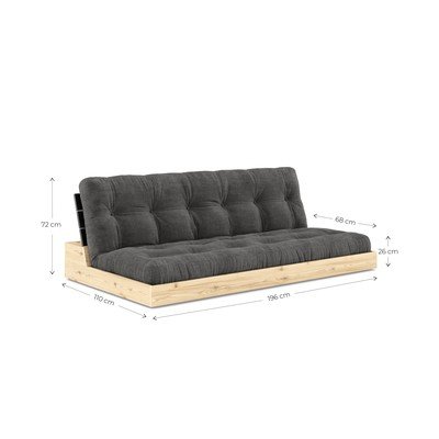 Sofa BaseSklopiva/s prostorom za odlaganje, futon, smeđa, s 3 mjesta, širina 196 cm