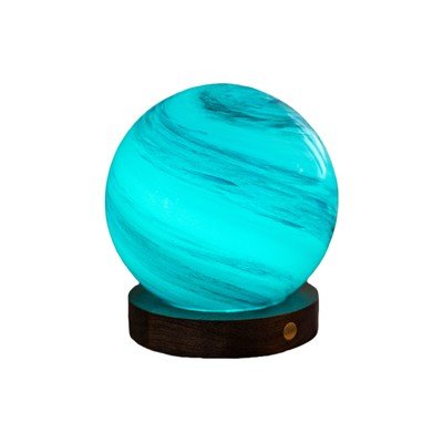 Svjetiljka nudi nekoliko opcija osvjetljenja - od dinamične igre sedam rotirajućih RGB lampica do umirujućeg bijelog svjetla. Intenzitet svjetla može se lako regulirati samo pritiskom na bakreni gumb. Podnožje lampe izrađeno je od FSC-certificiranog američkog oraha.