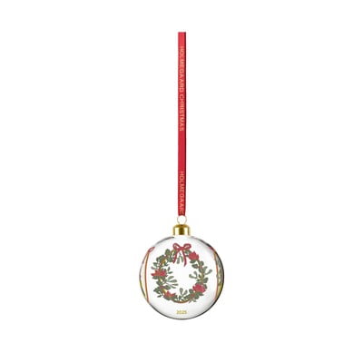 Godišnja božićna kugla 2025. brenda Homlegaardprekrasan je dodatak blagdanskom razdoblju. Ove godine Holmegaard se osvrće na svoju dvjestogodišnju povijest, pa je ova kugla u duhu romantičnog Božića, koji se odnosi na razdoblje kada je brend osnovan. Kugla je ukrašena motivima umjetnice Jette Frölich, koji prikazuju svečani vijenac od bujnog zelenila, božićnih ruža i bobica božikovine, kao i mladi par koji se drži za ruke ispod imele. Godina 2025. vidljivo je označena na kugli. Ovaj ručno puhani stakleni ukras promjera 8 cm nadopunjuje elegantna svilena vrpca sa zlatnim utiskivanjem, koja se savršeno slaže sa zlatnim vrhom kugle. Holmegaardova božićna kugla stvara toplu i nostalgičnu atmosferu koja potiče ugodne razgovore i podsjeća na Božiće iz prošlosti. Možete je objesiti na božićno drvce ili na zelenu granu i kombinirati s drugim komadima iz Holmegaardove božićne serije, koji su dizajnirani da se lako kombiniraju s ukrasima iz prethodnih godina. Holmegaard je pionir u proizvodnji stakla od 1825. godine, stvarajući kultne dizajnerske komade.