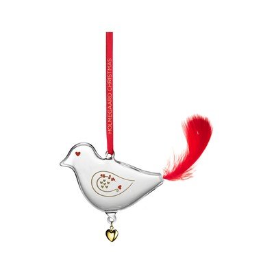 Božićni ukras Ann-Sofi Romme Annual Christmas Bird 2025 iz Holmegaarda prekrasan je dodatak blagdanskom razdoblju. Holmegaard ove godine slavi 200. obljetnicu, pa je ovaj ukras poseban podsjetnik na taj događaj. Dizajn je inspiriran elegantnim labudom, koji je simbol brenda, a nadopunjuje ga motiv malih srca i grančica zimskih bobica. Cijela kompozicija prenosi poruku transformacije, ljepote i poetske radosti. Ova staklena ptica izrađena je od ručno puhanog stakla, što jamči njezinu jedinstvenost. Vizualno, ukras je ukrašen crvenim srcem umjesto oka, zlatnim srcima na tijelu, pravim crvenim perom kao repom i malim zlatnim privjeskom u obliku srca koji visi s dna. Također uključuje svilenu vrpcu, zahvaljujući kojoj ukras možete objesiti na drvce, na prozor ili na grane crnogorice. Također će lijepo nadopuniti druge komade iz nostalgične božićne kolekcije. Ann-Sofi Romme stvara svoju božićnu kolekciju za Holmegaard od 1993. godine, a svaka od njih donosi originalnu božićnu priču koja u mnogima budi radost i sjećanja na romantične božićne trenutke. Ova božićna ptica Ann-Sofi Romme visoka je 7 cm i dugačka 14 cm, uključujući repno pero.