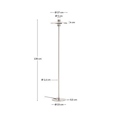 Podna lampa Nuvira brenda Kave Home odlikuje se elegantnim i funkcionalnim dizajnom. Njena konstrukcija je izrađena od satenskog čelika, što će svakoj prostoriji dodati moderan i sofisticiran dodir. Svjetiljka također ima ekstra fini tekstilni kabel, koji izgleda visokokvalitetno i elegantno te se savršeno uklapa u različite vrste interijera. Kompatibilna je s G9 žaruljom, ali žarulja nije uključena.
