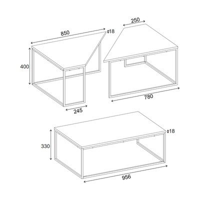 Stolići za kavu u setu 3 kom s pločom stola u dekoru hrasta 70x110 cm Titan – Marckeric