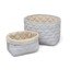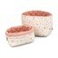 Set košara od tkanine Classic Stripes Blue, Praline brenda Cam Cam Copenhagen praktično je rješenje za organiziranje stvari u dječjoj sobi, na stolu za previjanje ili u kupaonici. Košare se mogu pohvaliti prošivenom površinom s mekim prugastim uzorkom. Izrađene su od 100% organskog pamuka s OCS certifikatom i punjene su 100% Oeko-tex Standard poliesterom, pri čemu 36% materijala dolazi iz organskih izvora. Unutarnja podstava ukrašena je tipičnim Cam Cam printovima, a rub košare može se preklopiti kako bi se print istaknuo. Dimenzije košara su 24 x 17 cm i 22 x 15 cm.
