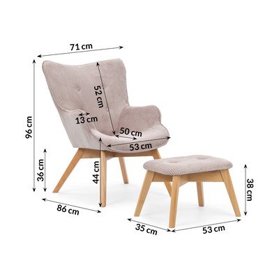 Bež fotelja s naslonjačem za noge od samta Niko – Ropez