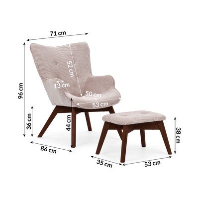 Bež fotelja s naslonjačem za noge od samta Niko – Ropez