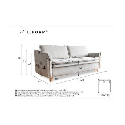 Svijetlo bež kauč na razvlačenje Miuform Charming Charlie, desni kut