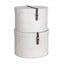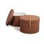 Organizirajte svoj dom sa setom od dvije praktične okrugle kutije iz Švedske Bigso Box. Njihova čvrsta konstrukcija nadopunjena je funkcionalnim i dekorativnim zakovicama. Poklopac je ukrašen kožnim remenom s kopčom, što olakšava otvaranje.