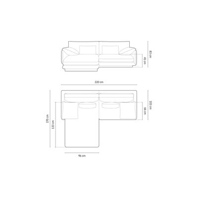 Baršunasti, s lijevim kutom/s ležaljkom, svijetlo siva, pogodna za kućne ljubimce/otporna na mrlje, s 3 mjesta, širina 220 cm