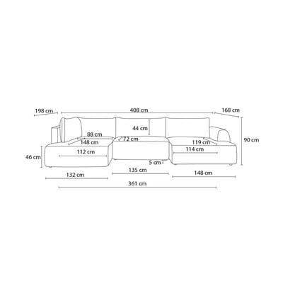 Od samta, sklopiva/s prostorom za odlaganje, s lijevim kutom/u obliku slova "U", svijetlo siva/bež, ostali, širina 408 cm
