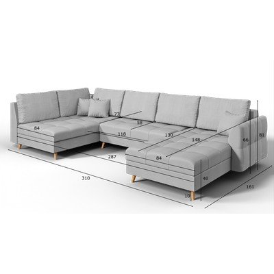 S desnim kutom/u obliku slova "U", siva, ostali, širina 310 cm
