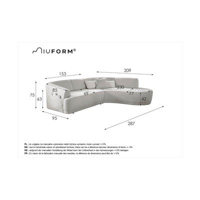 S desnim kutom/u obliku slova L, svijetlo siva, s 3 mjesta, širina 287 cm, dubina 209 cm, dubina sjedala 69 cm