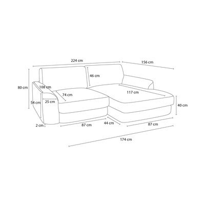 Od bouclé tkanine, s desnim kutom/s ležaljkom, svijetlo siva, vodootporna, s 3 mjesta, širina 224 cm