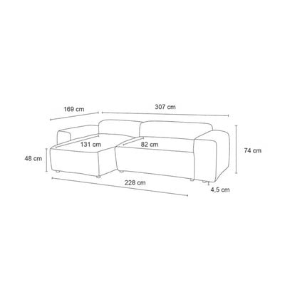 Od samtaS lijevim kutom/s ležaljkomSvijetlo sivaS 4 mjestaŠirina 306 cm