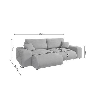 Od samta, s desnim kutom/s lijevim kutom/promjenjiva/s ležaljkom, svijetlo siva, s 3 mjesta, širina 237 cm