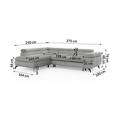 Od samtaPodesiva/sklopiva/s prostorom za odlaganjeS lijevim kutom/u obliku slova LSvijetlo sivaPogodna za kućne ljubimce/otporna na mrljeS 4 mjestaŠirina 275 cm
