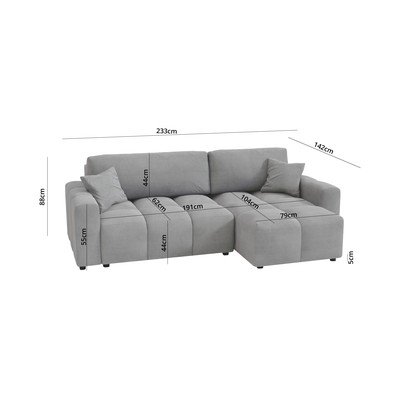 Kutna garnitura LukiSklopiva/s prostorom za odlaganje, s desnim kutom/s lijevim kutom/promjenjiva/s ležaljkom, svijetlo siva, s 3 mjesta, širina 233 cm