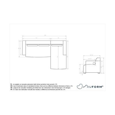 S desnim kutom/s ležaljkomSvijetlo sivaS 3 mjestaŠirina 264 cm