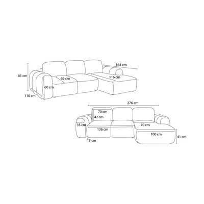 Od bouclé tkanine, sklopiva/s prostorom za odlaganje, s desnim kutom/s ležaljkom, svijetlo siva, s 3 mjesta, širina 276 cm
