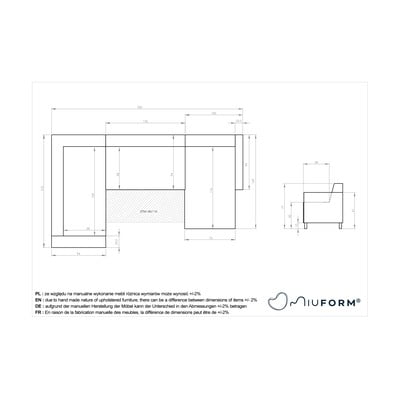 S lijevim kutom/u obliku slova "U"