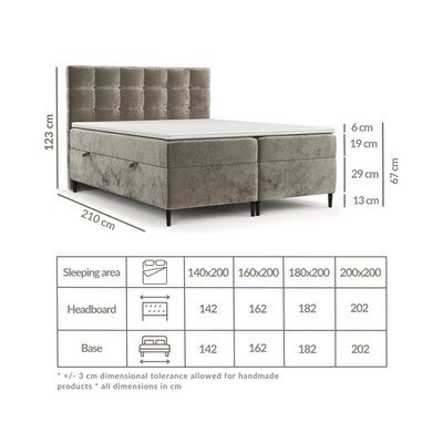 Ovaj boxspring krevet objedinjuje visokokvalitetni madrac od bonell opruga i poliuretanske pjene te dvostrani nadmadrac od elastične poliuretanske pjene. Nadvlaka ne samo da donosi veću udobnost spavanja, već i pouzdano štiti madrac od oštećenja i prljavštine. Njegovu skidivu navlaku s ekstraktom algi možete skinuti u bilo kojem trenutku i prati na temperaturi do 40 ⁰C.