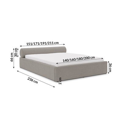 160x200 cm, s prostorom za odlaganje, s podnicom, tapecirani, od šenila, svijetlo sivi