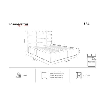 Sivi tapecirani bračni krevet s prostorom za pohranu s podnicom 160x200 cm Bali – Cosmopolitan Design