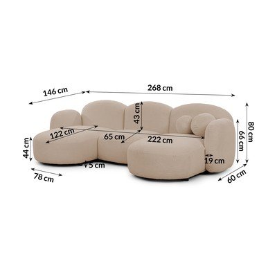 Svjetlo smeđa kutna garnitura od bouclé tkanine (s desnim kutom/s ležaljkom) Orbit – Ropez